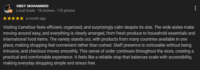 • Same Carrefour Quality: Despite its size, it offers a great selection of products.