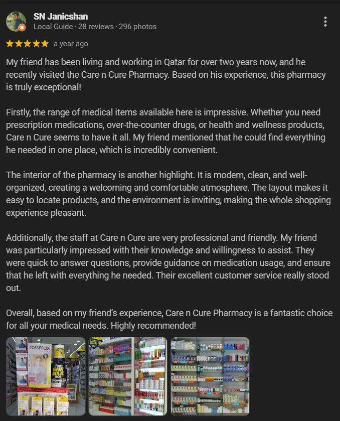 With their wide network, quick delivery, and digital services, Kulud Pharmacy and Care n Cure ensure that everyone in Qatar can easily access healthcare. You can rely on these pharmacies for prescriptions, wellness items, or professional advice in Doha. Thanks to their dedication to great service and happy customers, they remain the leader in pharmaceutical care in the area.